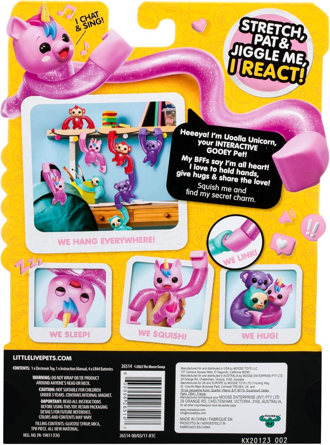 Little Live Pets Hug n’ Hang Zoogooz – Uoolla Unicorn. Interactive Electronic Squishy Stretchy Toy Pet with 70+ Sounds & Reactions. Stretch, Squish & Link Their Hands. Display Them & Hang Them Around(Unicorn)